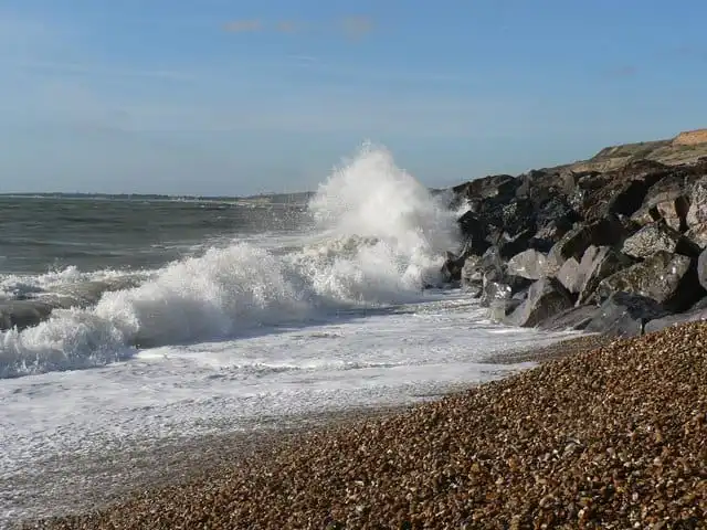 Milford on Sea Beach is a dog-friendly beach worth visiting. It is a long shingle beach with character beach huts lining the promenade and low cliffs back it. It adjoins a nature reserve, making it the perfect nearest beach for walking your dog.
